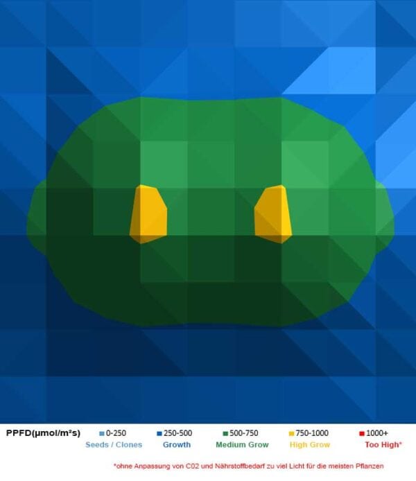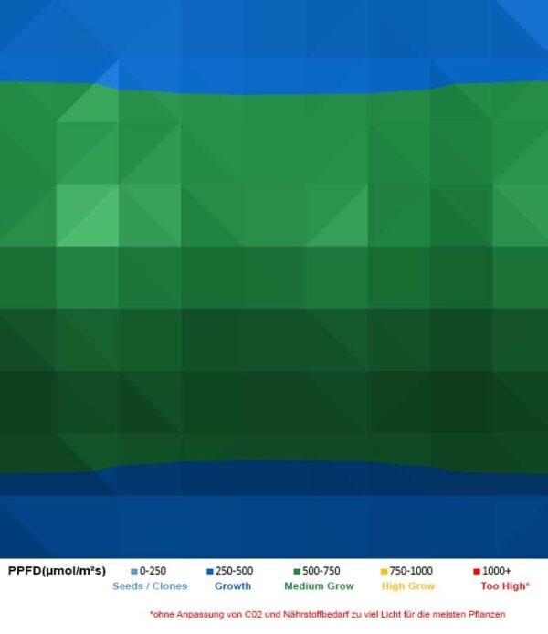 für Flächen bis zu: 150w -> 80 x 80cm | 225w -> 100 x 50cm | 300w -> 150 x 50cm