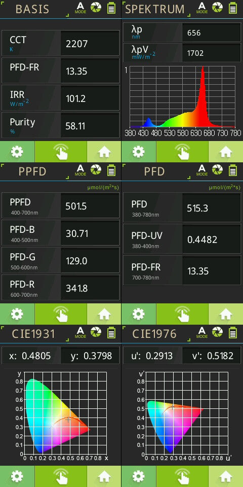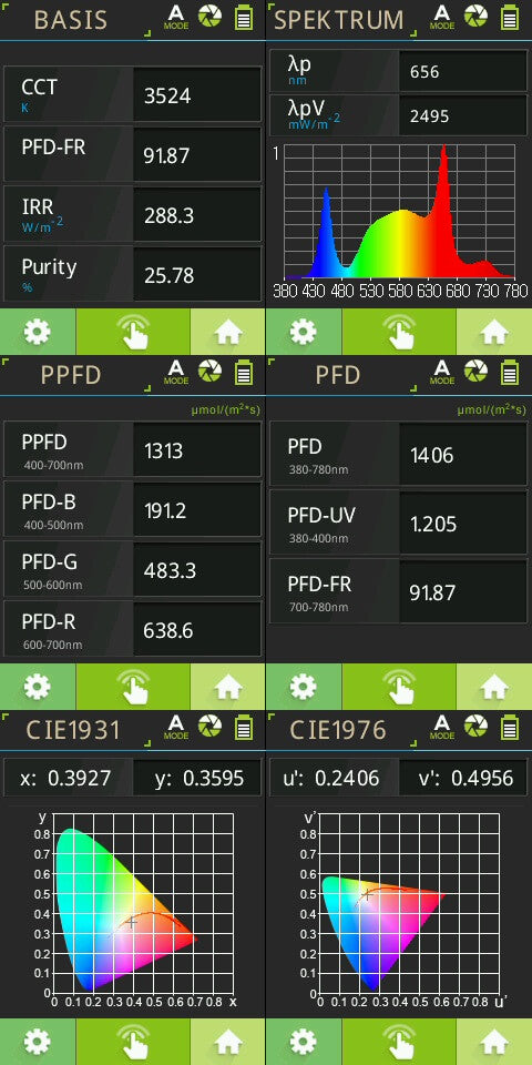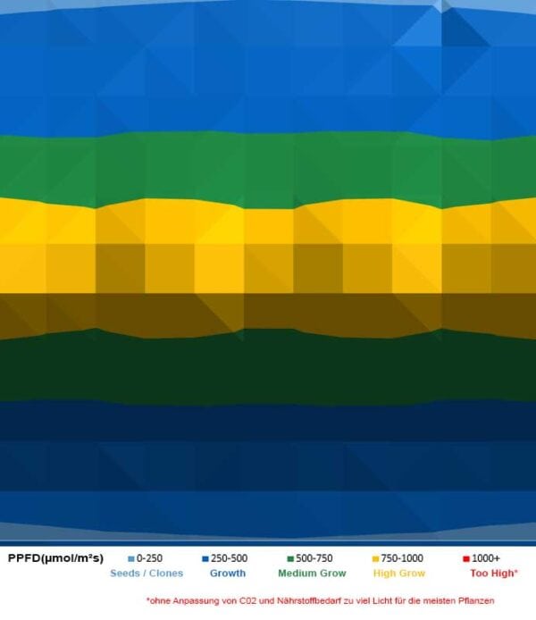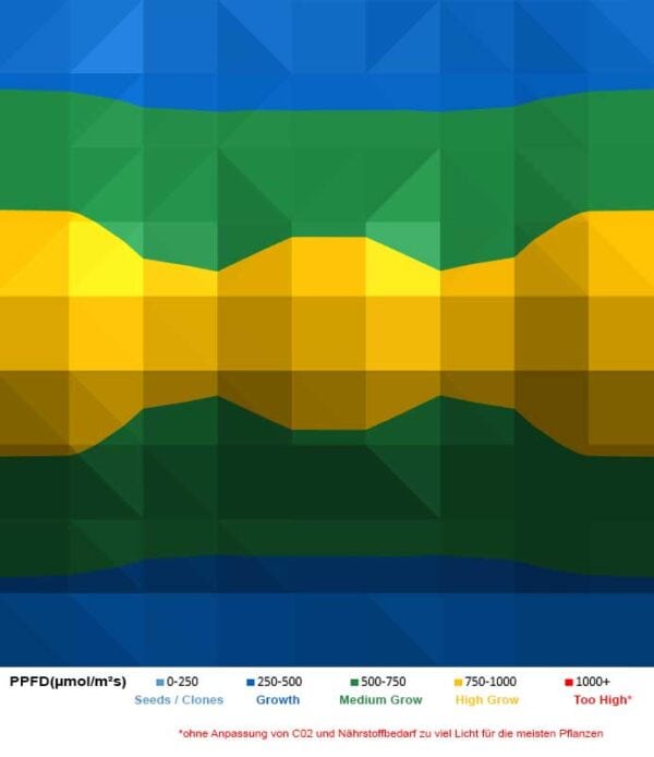 Ab der Fruchtphase bekommst du folgendes Spektrum wenn du alle Kanäle auf 100% betreibst. Natürlich bist du jederzeit flexibel im Mixen der Intensität der einzelnen Kanäle!
