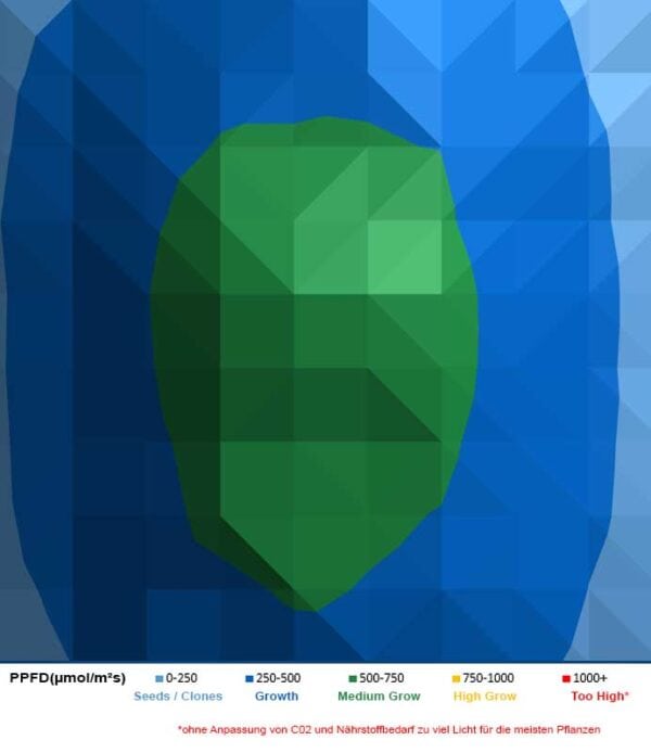 - über 350 PPFD (1m²/30cm Abstand/Homebox)